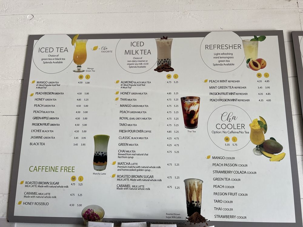 Cha For Tea - Long Beach offers a wide range of amenities such as delivery, takeout, and vegan options, making it accessible to a diverse range of customers. Located in Long Beach, CA, this Asian-owned establishment provides a trendy yet casual atmosphere with options for outdoor seating and private dining. The menu features appetizers like Cajun Chicken Dumplings and Cha Combos such as Crispy Chicken Combo and Curry Chicken Combo. Customer reviews rave about the flavorful drinks like the mango green tea, honey jasmine milk tea with boba, and Earl Grey boba tea. The service is friendly, the food is delicious, and the overall vibe is welcoming. If you're a fan of unique tea flavors and top-notch boba, Cha For Tea - Long Beach is a must-visit spot.